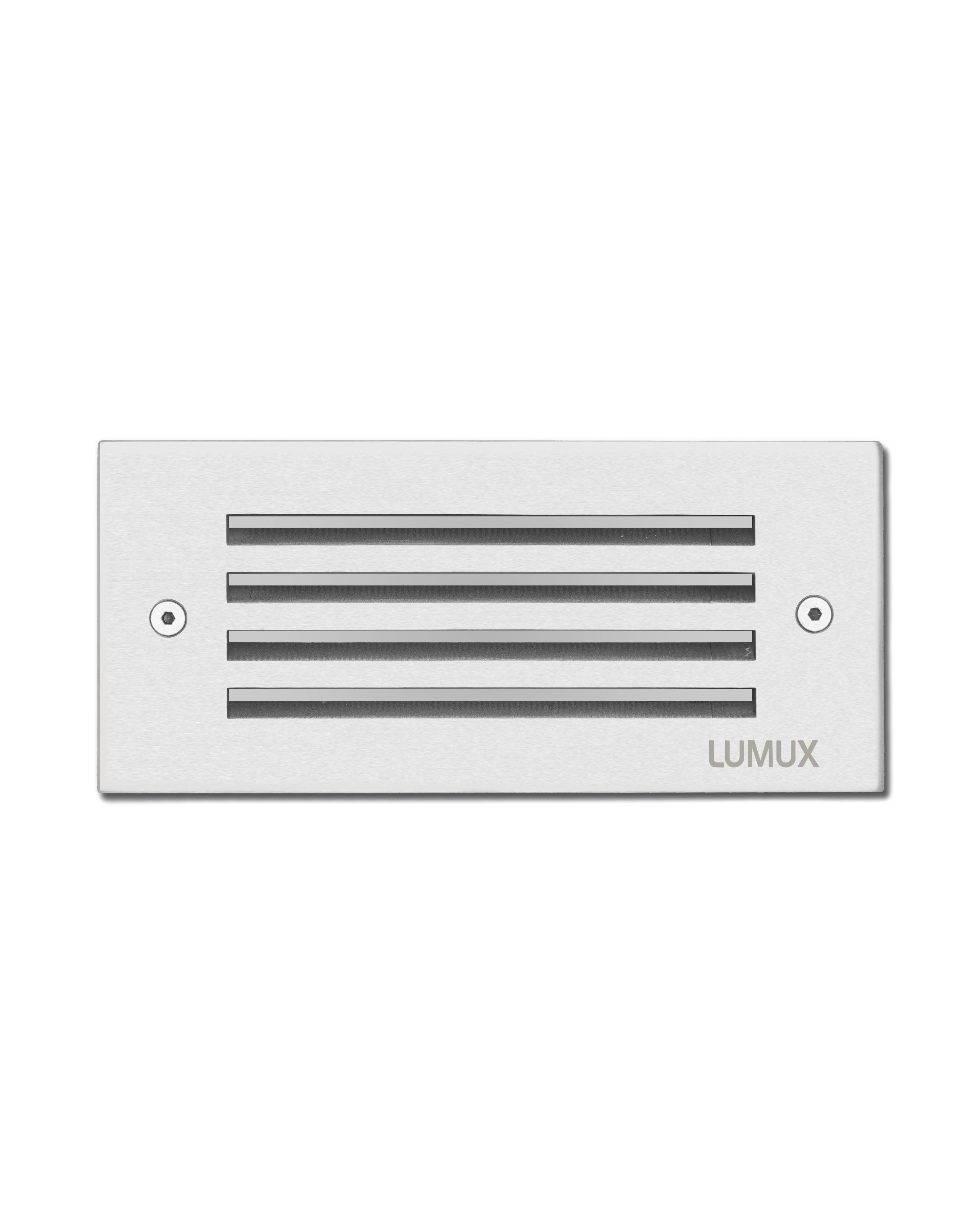 The Lumux SL300 series is a family of precision engineered, recessed LED architectural step lights that are designed for durability and performance. Constructed from the highest quality materials and components, this step light is offered in a wide array of form factors and grill options to fit any specification. A die cast aluminum body is seamlessly integrated with its grade 316 stainless-steel faceplate with captive, vandal resistant stainless-steel screws. This step light features a frosty glass diffuser, reducing glare, and is energy efficient for long-lasting indoor and outdoor applications.